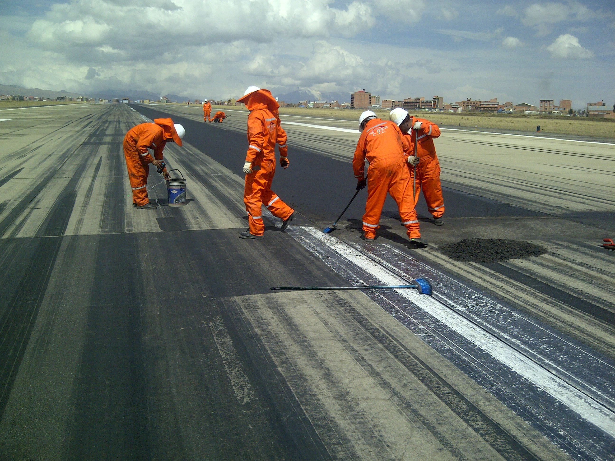 SELLO DE GRIETAS Y FISURAS EN DISTINTAS LOSAS DE LA PISTA DE ATERRIZAJE. SELLO DE JUNTAS DE DILATACION PARA EVITAR EL INGRESO DE AGUA. TRABAJO EJECUTADO CON EMULSION ASFALTICA MODIFICADA CON POLIMERO DE ROMPIMIENTO RAPIDO 67% RESIDUO ASFALTICO, APLICADA A TEMPERATURA AMBIENTE.